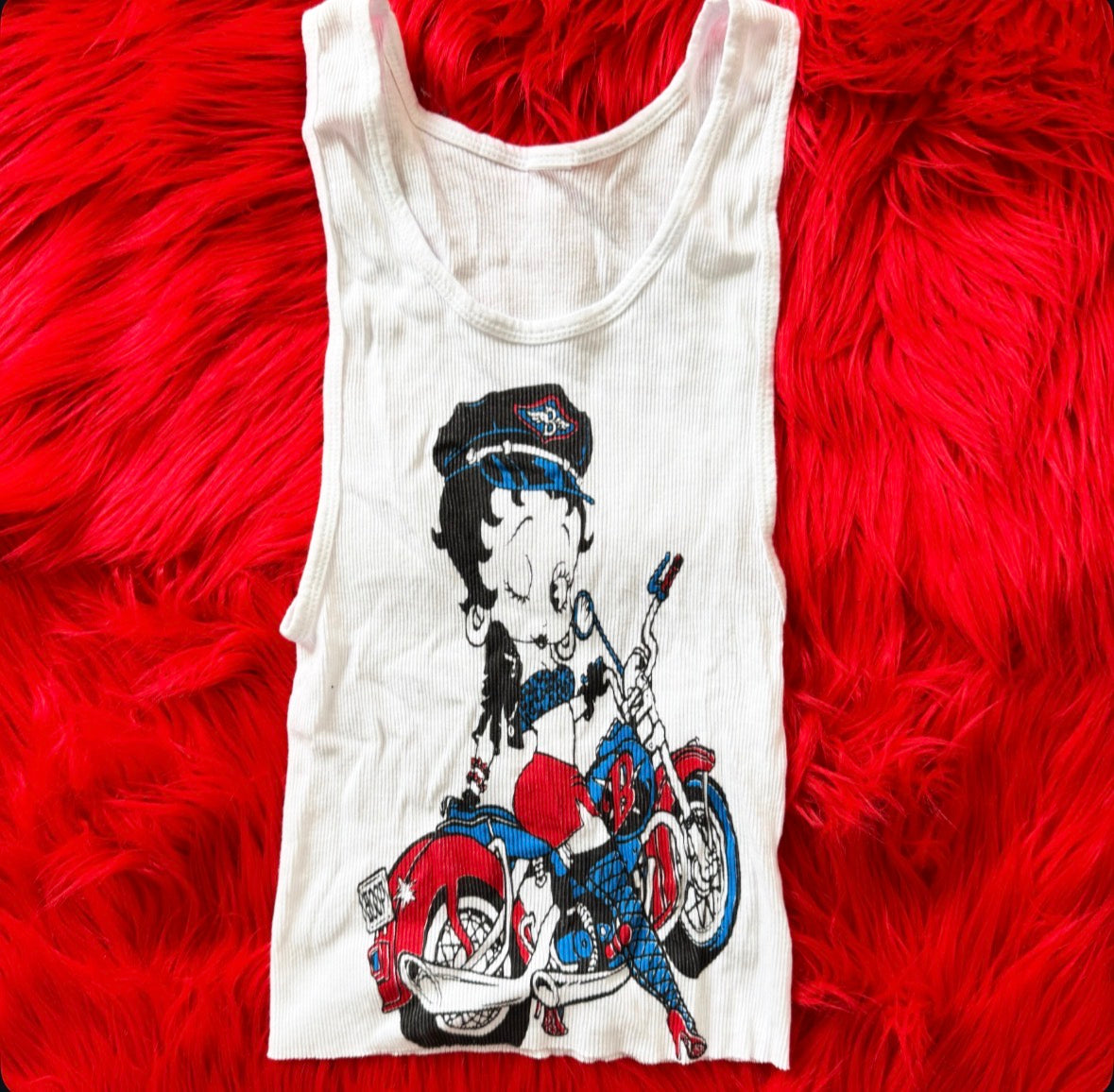 Biker Betty Boop Tank Top. Size XS - Small - Medium Stretchy Material. Great Condition See Photos