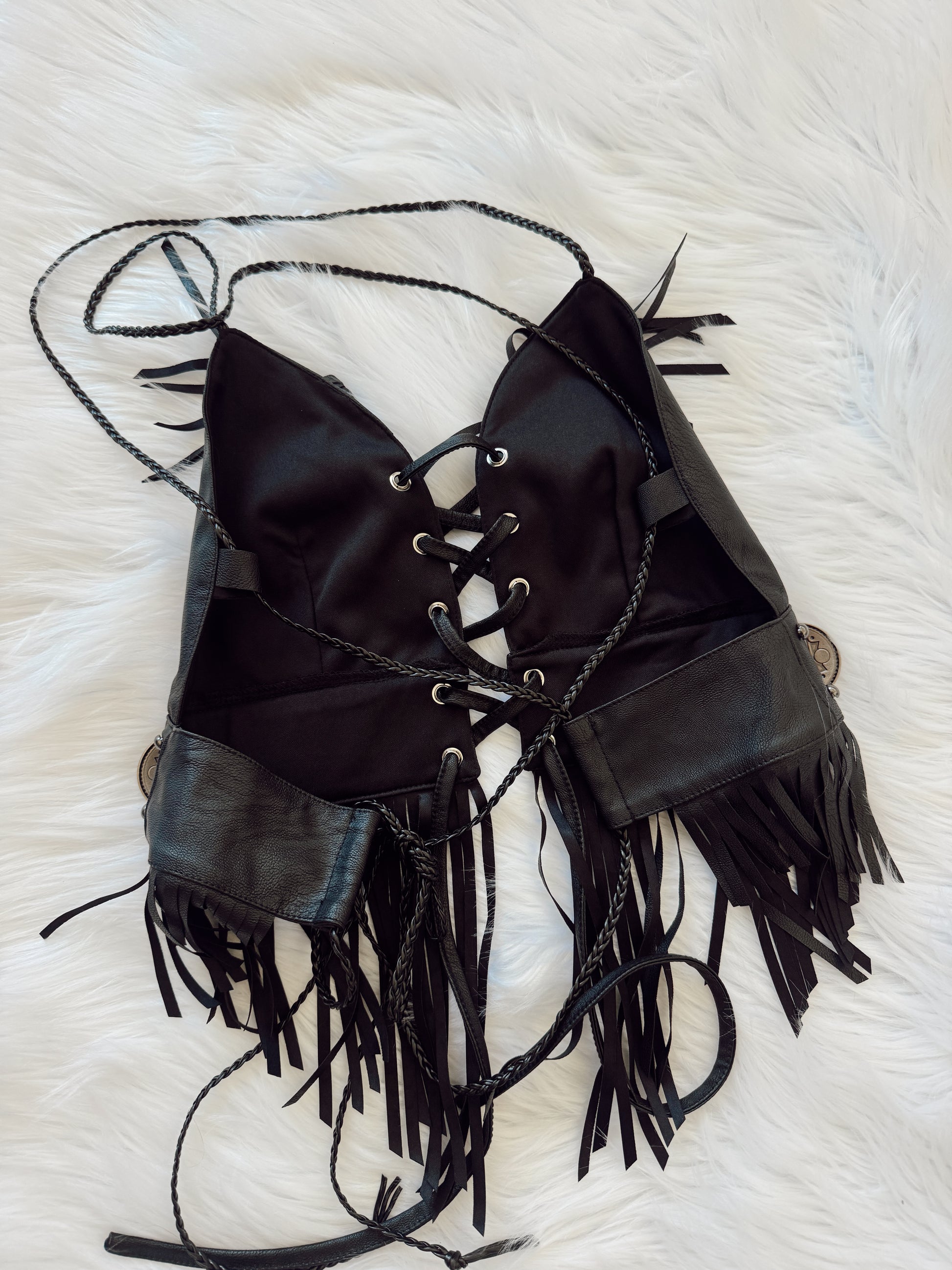 Leather Concho Halter Top. Size Small - Medium. All Straps Adjustable. Faux Sturdy Nice Leather Material. Great Condition See Photos