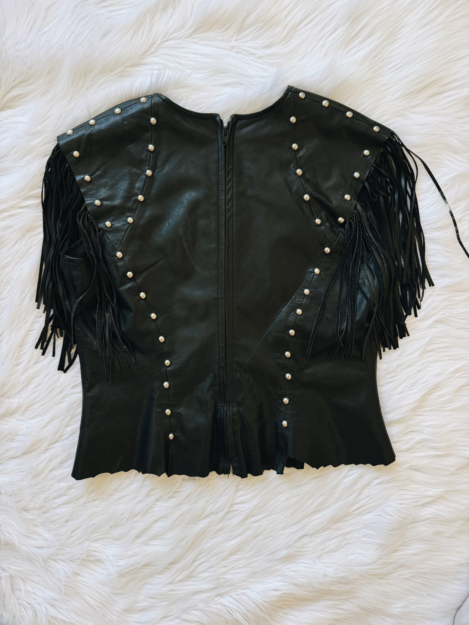 Vintage Black Leather Fringe Chain Top
