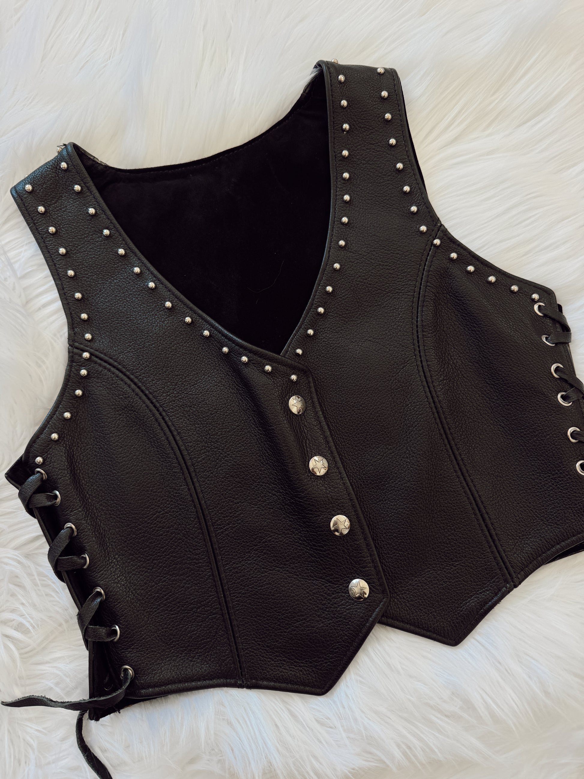 Vintage Black Leather Studded Star Biker Vest. Women's Size Small - Medium. Great Condition, Nice Thick Genuine Leather.
