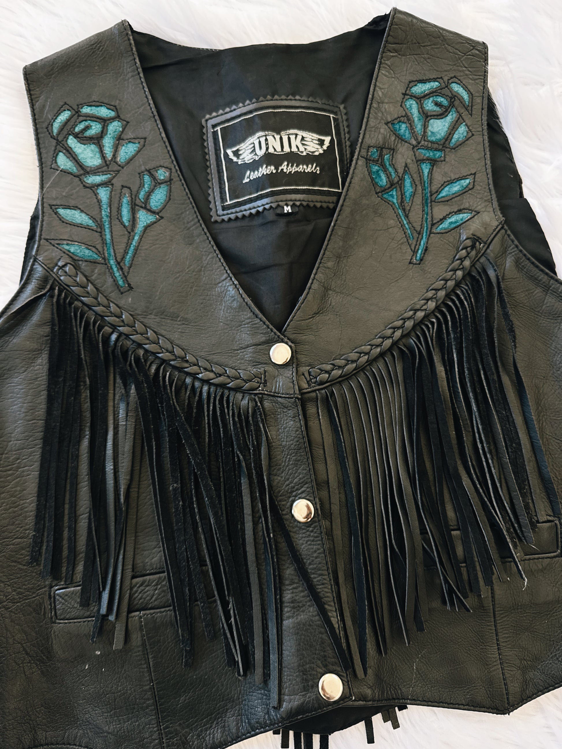 Vintage Blue Rose Fringe Vest. Womens Size Medium. Great Condition, See Photos.