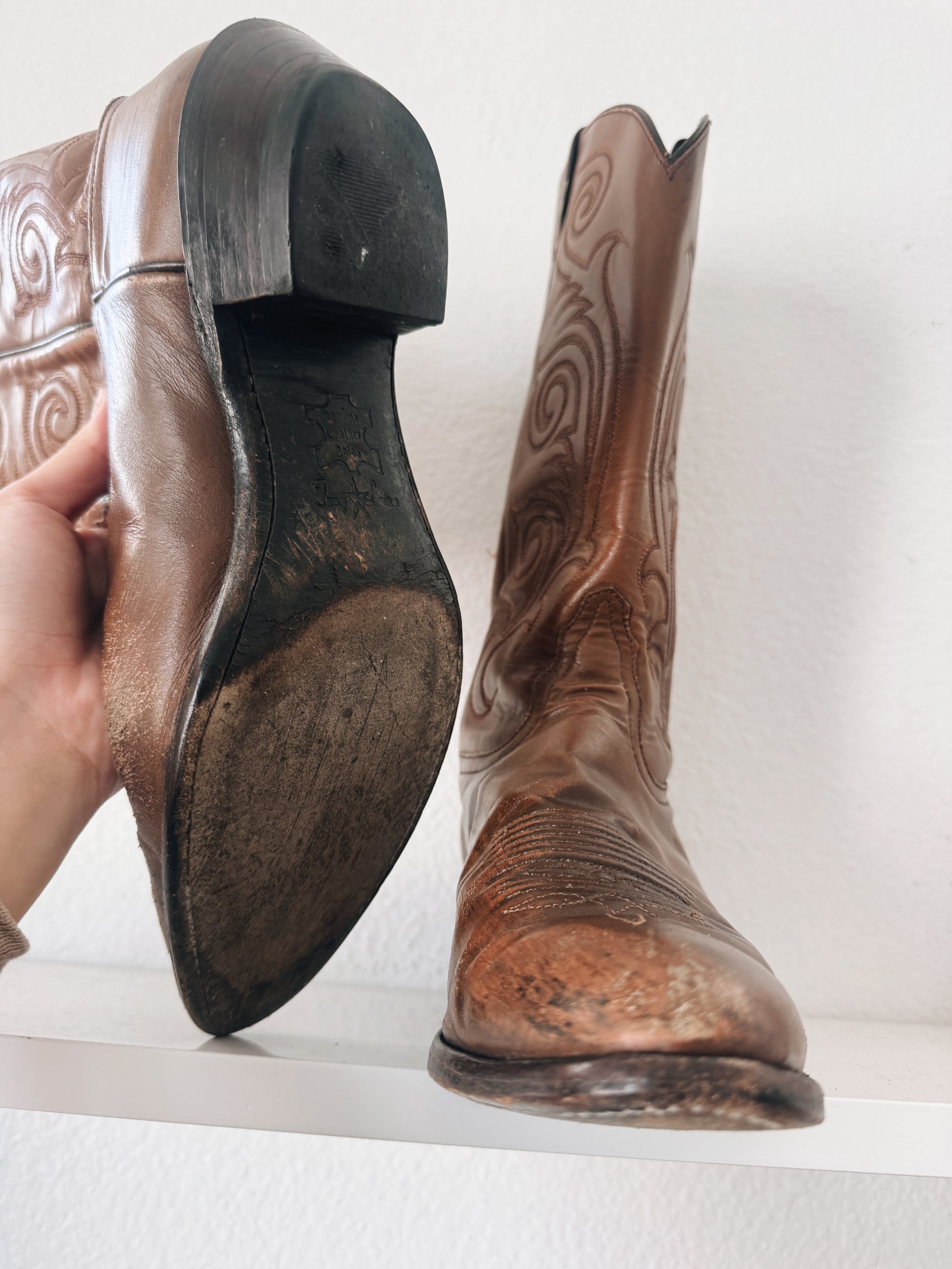 Vintage Brown Tony Lama Cowboy Boots. Womens Size 9. Genuine Leather, Made In USA. Great Condition Natural Vintage Wear With Scuffs & Marks. See Photos.