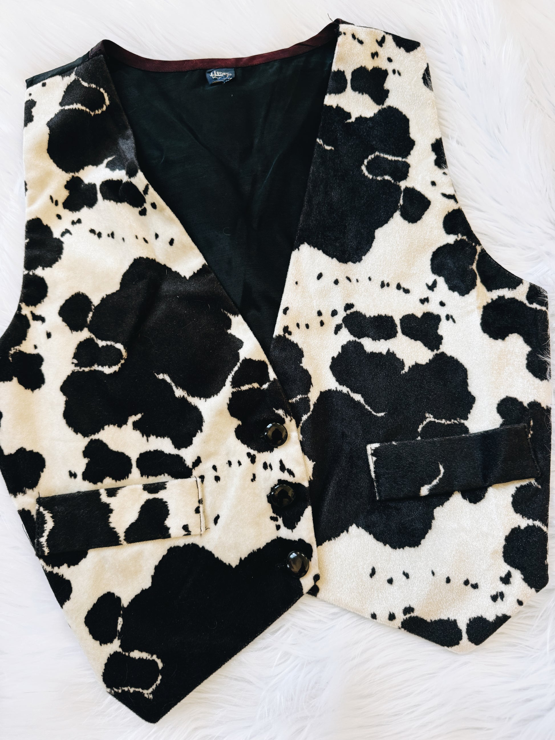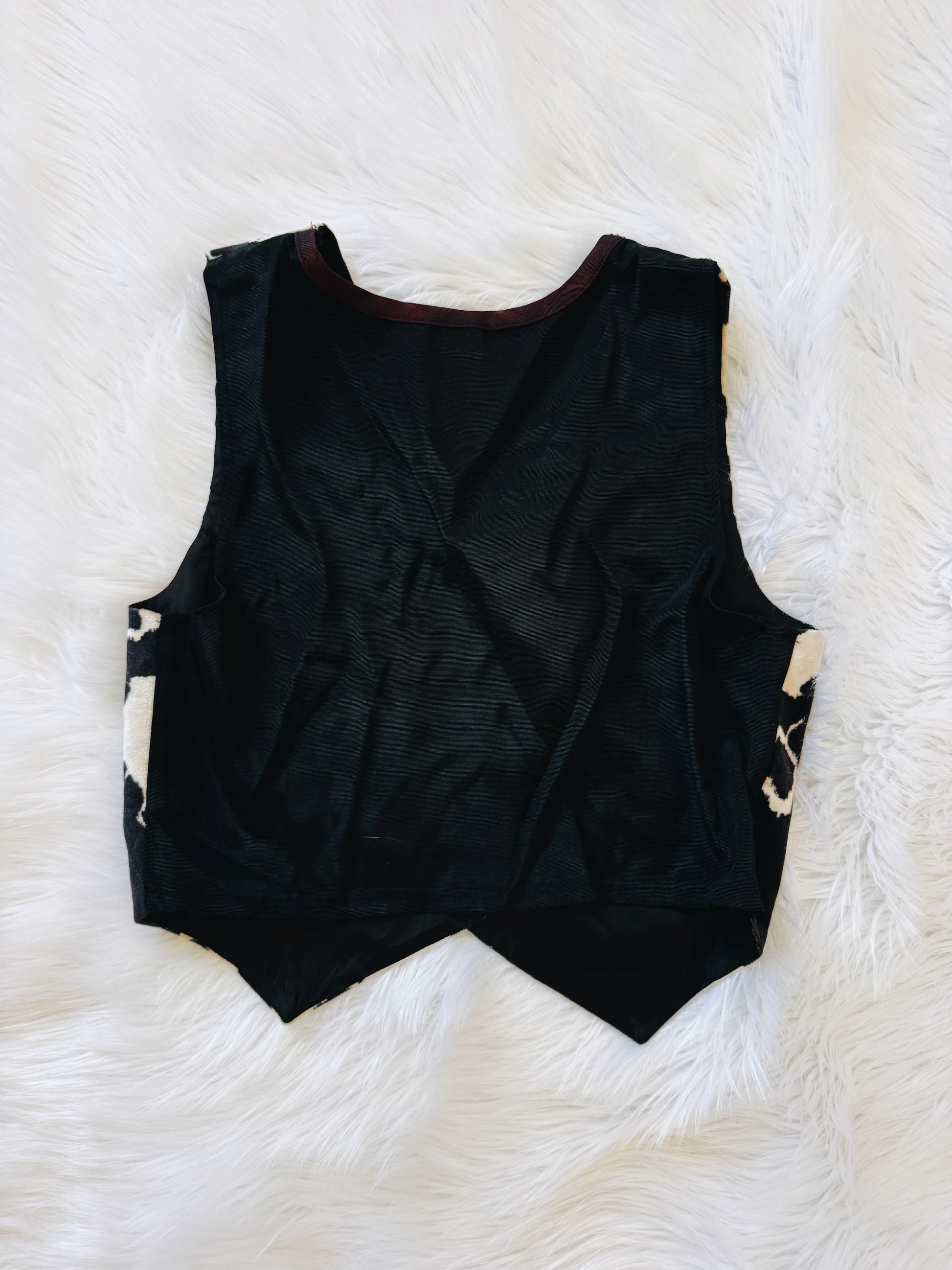 Vintage Cowhide Pattern Faux Fur Vest. Size Medium - Large. Great Condition See Photos