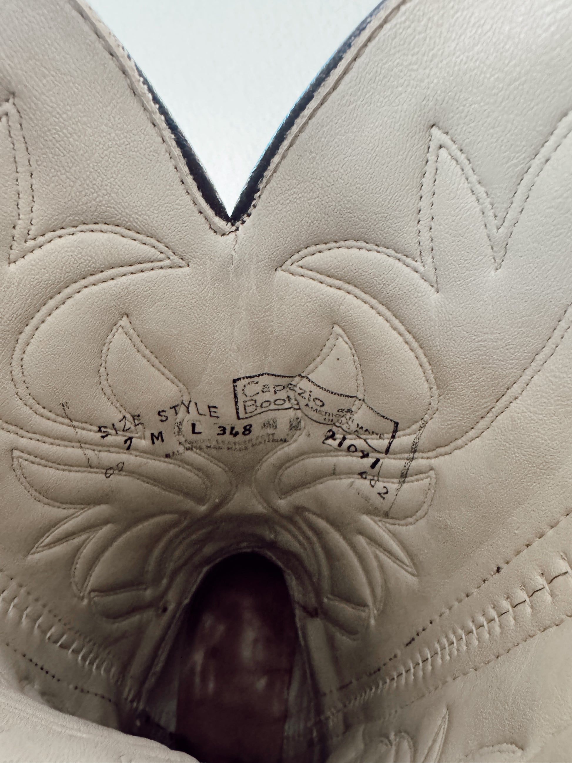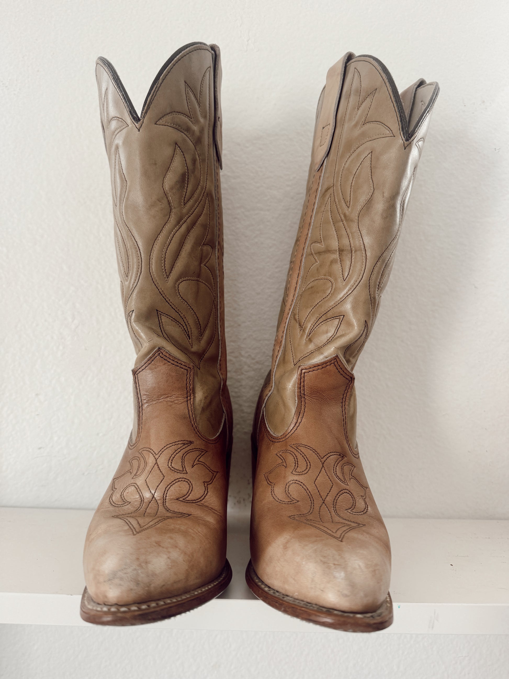 Vintage Capezio Cream & Tan Cowboy Boots. Womens Size 7. Genuine Leather, Great Condition See Photos