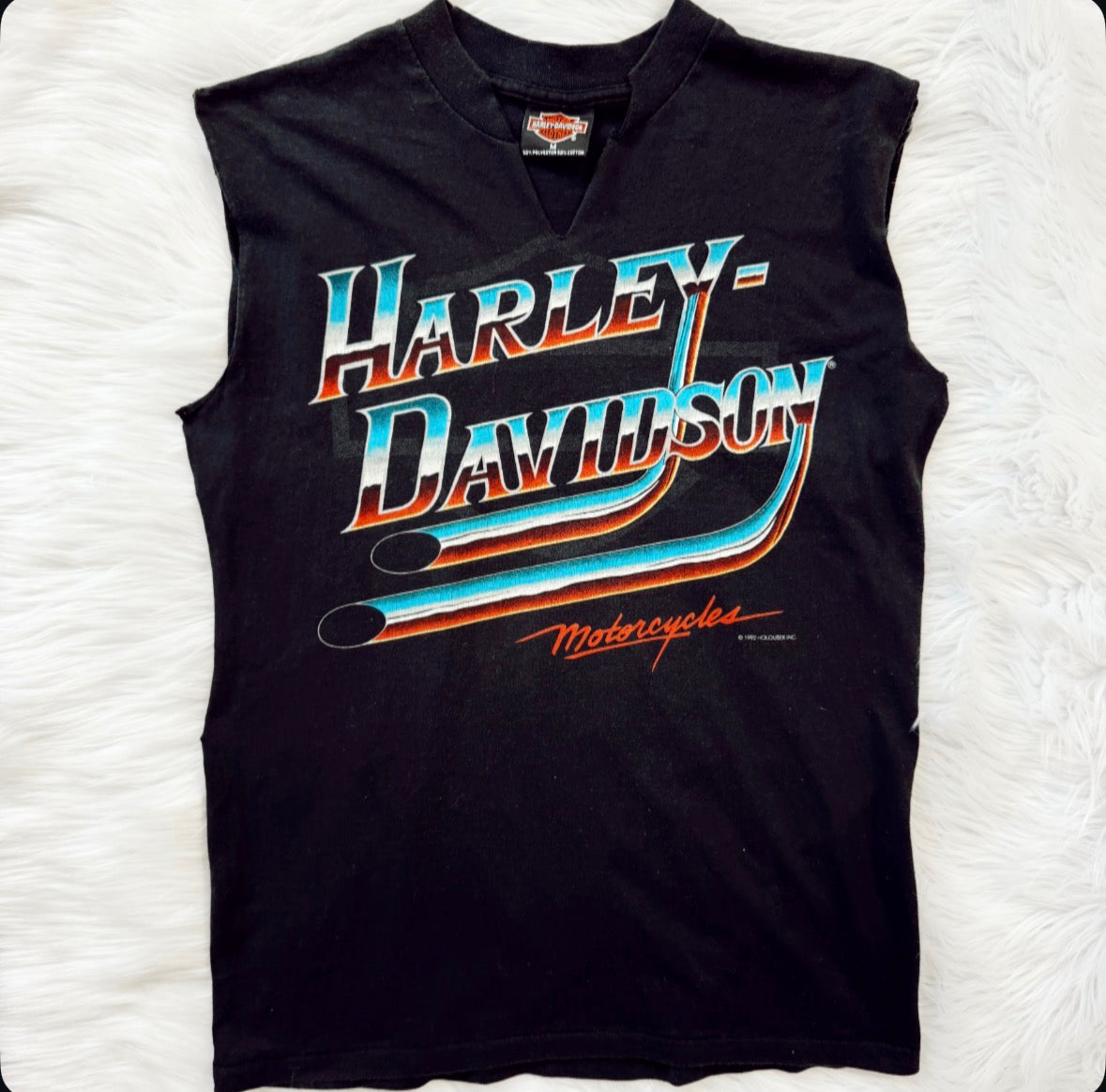 Vintage 1992 Harley Davidson Pipes Cut Muscle Tank Top. Size Large Best. Front & Back Graphic. Great Condition See Photos.