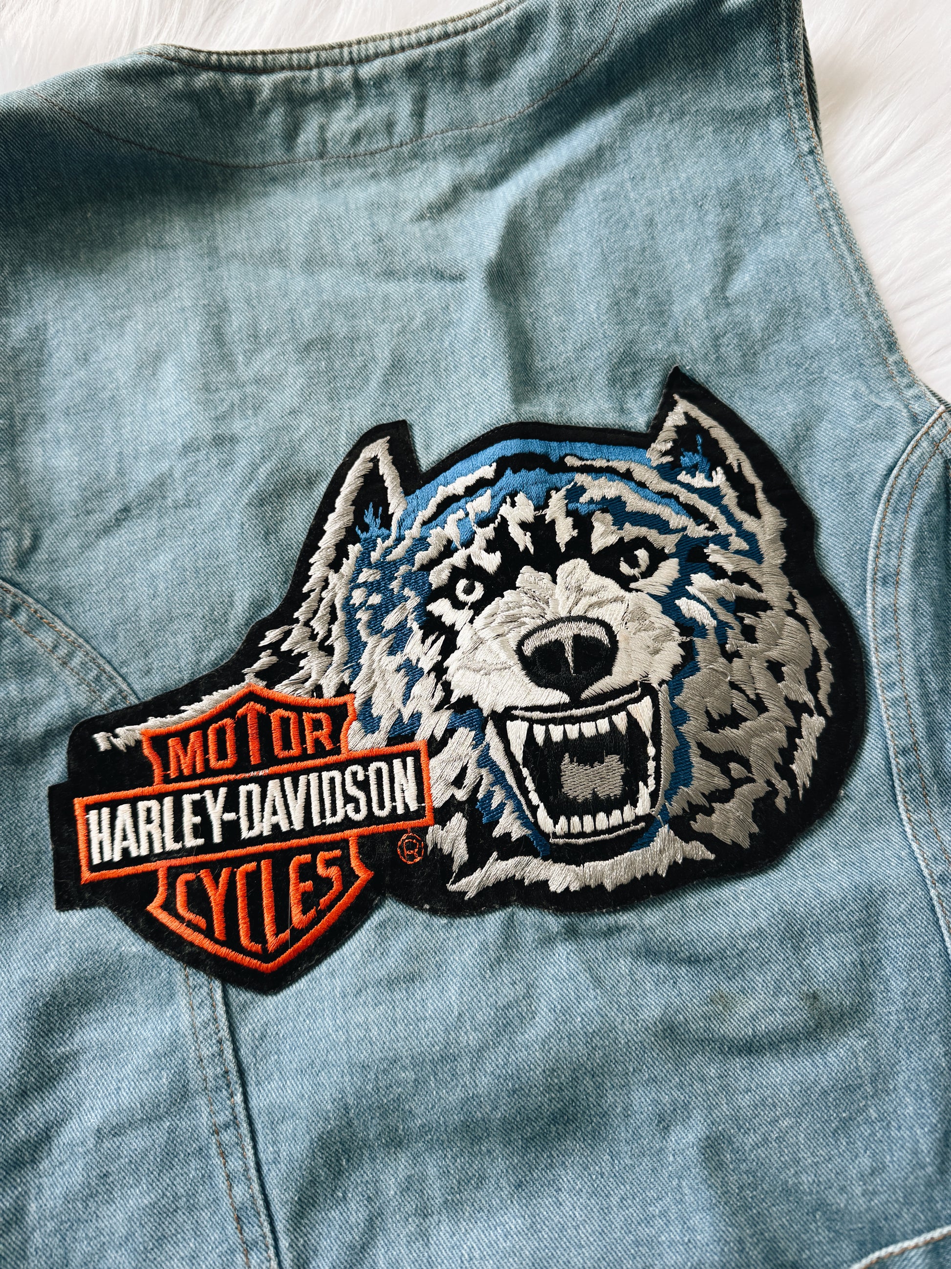 Vintage Harley Wolf Patch Denim Vest