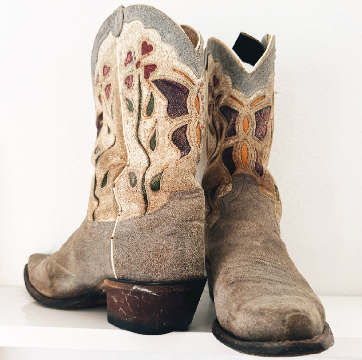 Vintage Justin Butterfly Floral Inlay Cowboy Boots