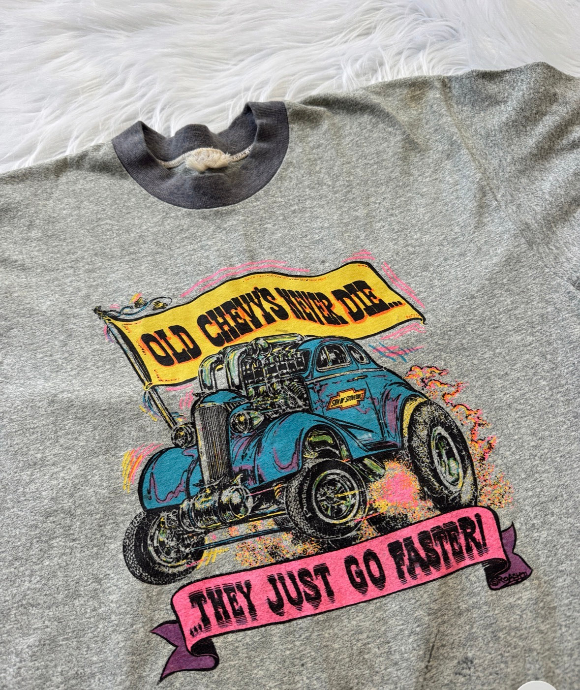 Vintage 1977 Roach Old Chevys Never Die, They Just Go Faster Tee. Size Medium - Large. Great Condition See Photos