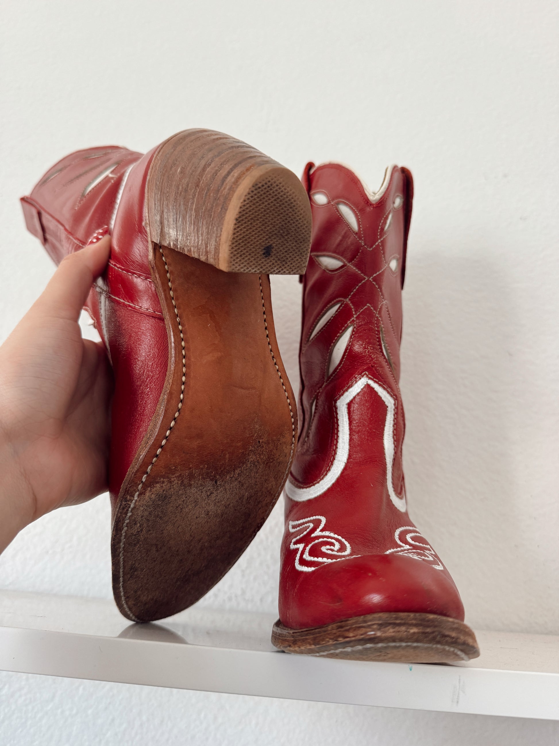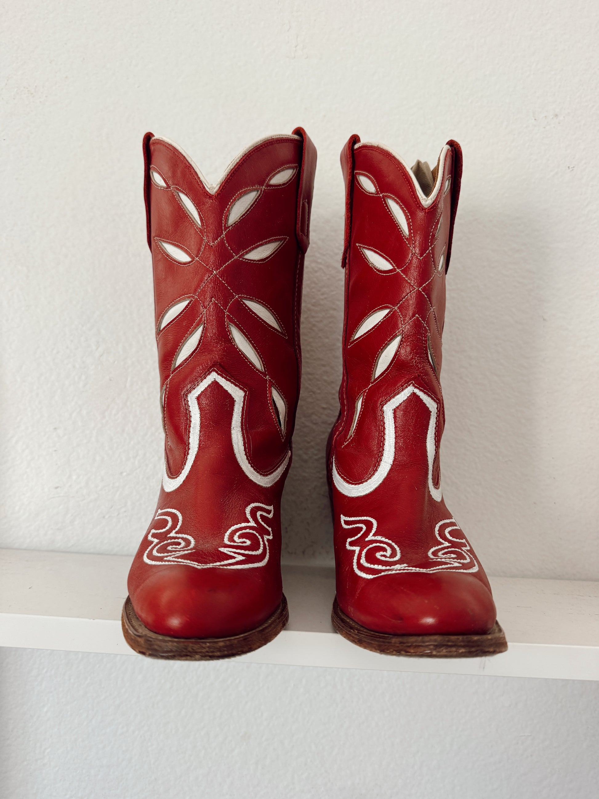 Vintage Red & White Inlay Cowboy Boots. Womens Size 8. Brand: Miss Capezio. Great Condition Genuine Leather See Photos
