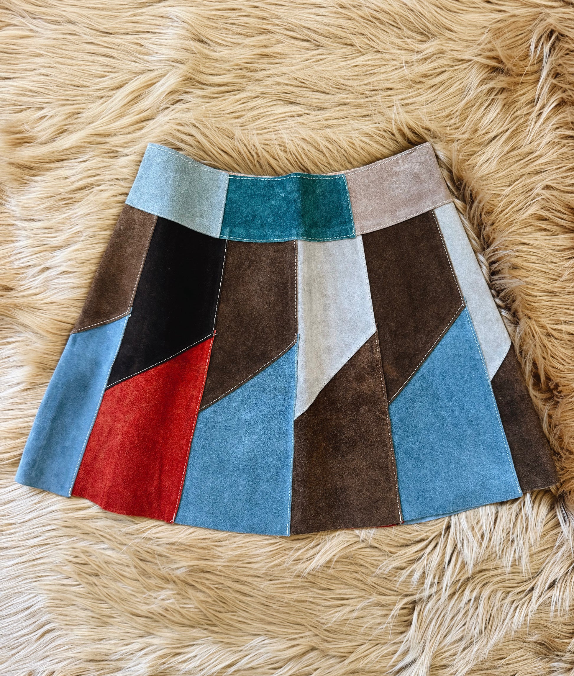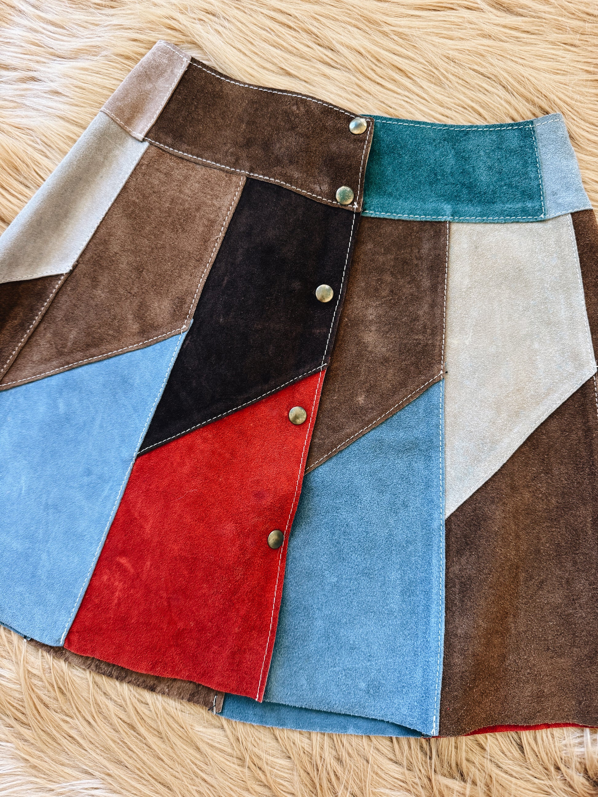 Vintage 60s/70s Suede Leather Patchwork Button Down Skirt. Women's Size Small. Perfect Condition See Photos