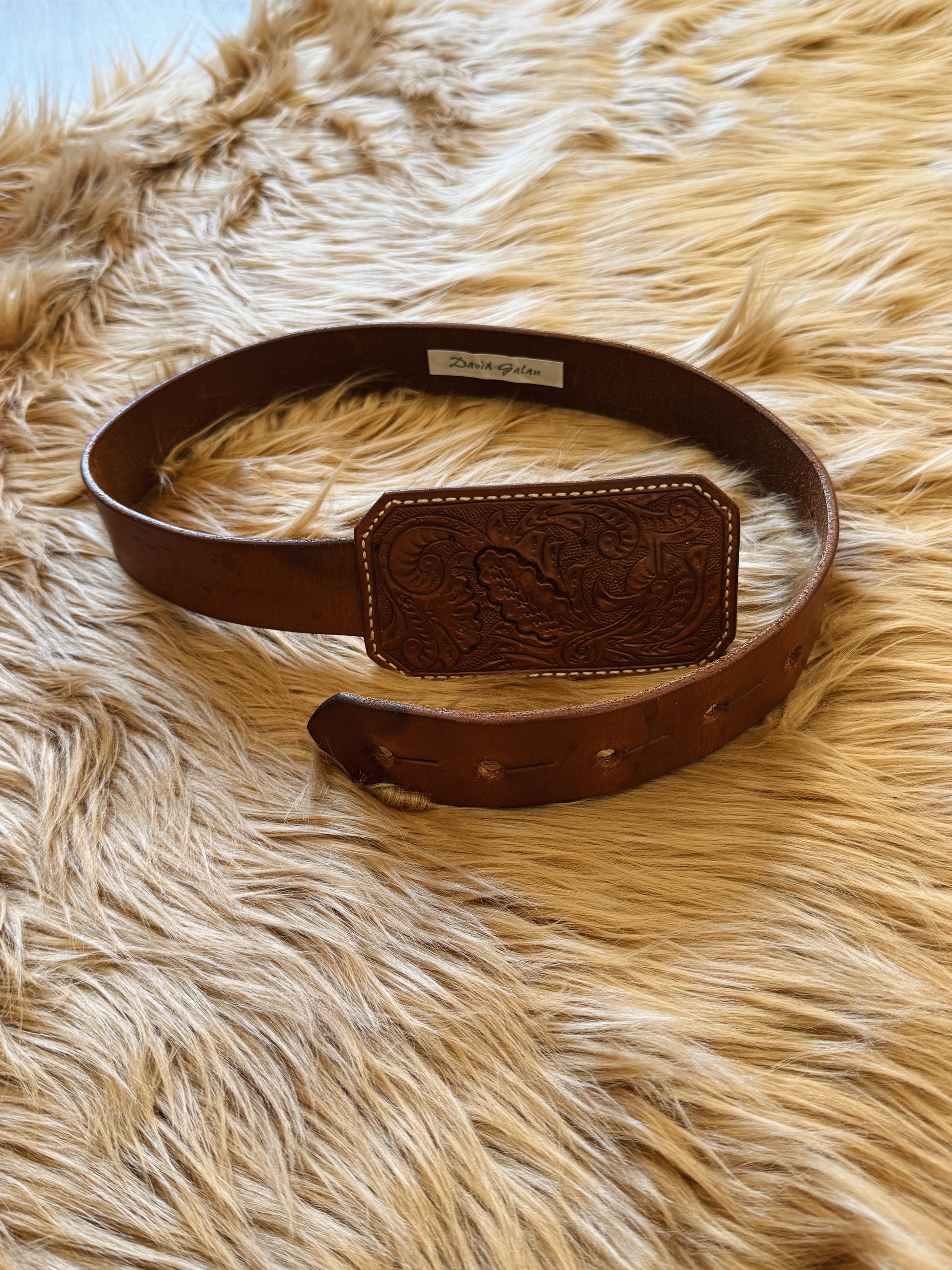 Vintage Tooled Leather Belt W/ Buckle. Great Condition See Photos.