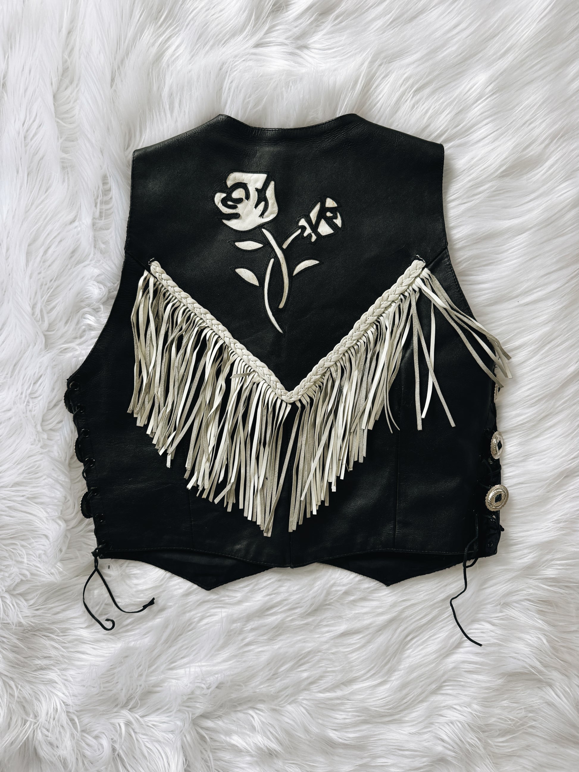 Vintage White Rose Fringe Vest. Size Large. Genuine Leather. Great Condition See Photos.